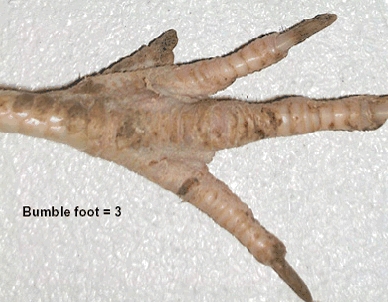 Target birds for score 1-2-3 for bumble foot syndrom